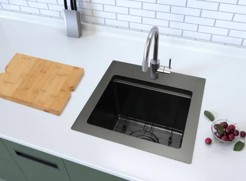 A glossy finish kitchen sink adds a touch of elegance and modern appeal to your kitchen. Its smooth, polished surface reflects light beautifully, creating a clean and premium look.